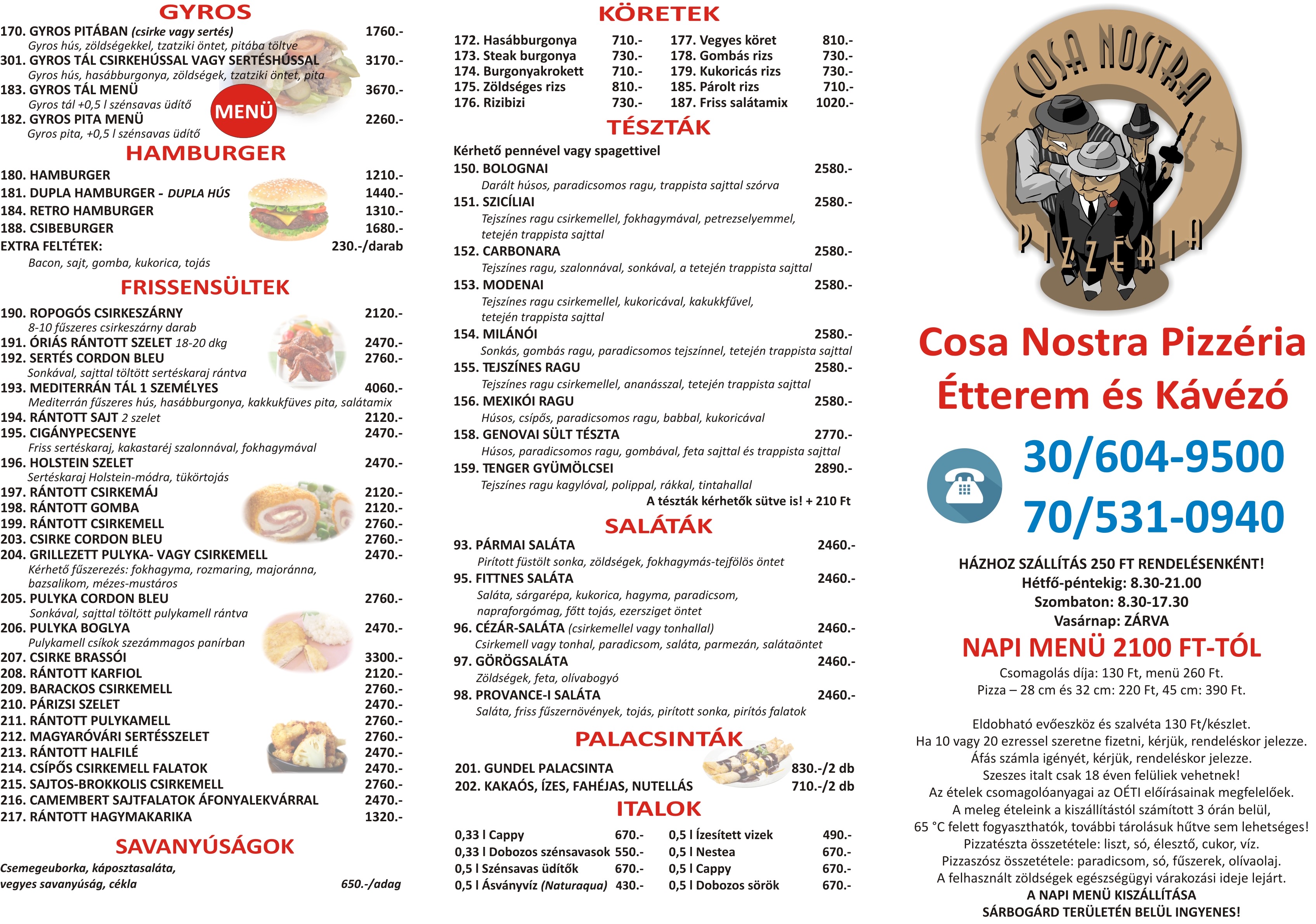 Napi menü: 2100 Ft/adag, csomagolással: 2360 Ft